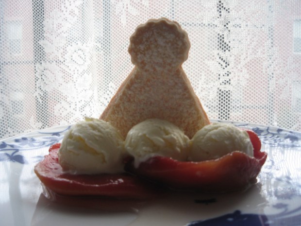 This time I decided to make camarones enchilados, which I had sprung on friends before, so I’d had some practice. For dessert, I attempted a cream cheese ice cream recipe with poached guava shells from Eating Cuban: 120 Recipes from the Streets of Havana to American Shores. Because the ice cream is so rich, I had thought to put three small scoops per guava shell. The boatlike shells holding the scoops reminded me of the three figures found in representations of the Virgen de la Caridad, the patron saint of Cuba. That’s how I found myself carving figurative saints out of Spanish shortbread dough. It seemed so right to find a Caridad in butter and sugar, but putting it all together was more difficult. Everyone enjoyed it, but the ice cream melted a little too much and the smaller cookies kept pitching forward into the improvised guava boats. It wasn’t till the next day that I was able to balance it all together with what was left. Next time, it will seem effortless.