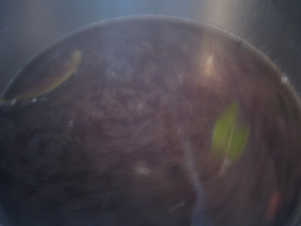 Soak the beans overnight with just enough water to cover.* Bring one pound of black beans to a simmer with 6-8 cups of water (in addition to their soaking water), two bay leaves and salt. Add a half pound of kielbasa cut into 1-inch slices. Lower to medium heat and cook covered for about one hour, checking regularly.