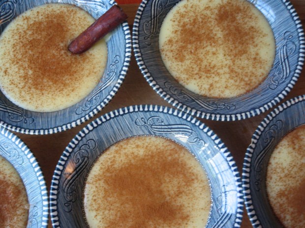 This week I’ve been practicing my Abuela Carmita’s natilla, a traditional custard similar to the Spanish crema catalana. A teacher in Cuba, my sister and I were left with her in the morning to learn Spanish which our parents worried we’d forget. After making us cafe con leche with toast (sliced in thirds and sprinkled with sugar), she would start the natilla early so it would have time to chill. Setting aside the whites to make meringues later, she’d heat the milk and beat the egg yolks. My sister and I would watch her stir, ready to fight over the wooden spoon and the raspa left behind in the still warm pot after she’d poured out the custard into individual blue bowls. Mixing the meringue with my grandfather, they’d piped it into tiny mounds and set them to bake, then he would make lunch while we sat down to our lessons. Lamenting that if we still lived in Cuba we’d be learning French instead, she’d lead us through the letters and rhymes in our silabarios until lunch was ready. When it was finally time for dessert, my grandfather’s bowl would have the cinnamon stick and lime peel (not sure why) while ours had our initials written across the top in cinnamon (which I just realized is almost impossible to do). The crisp meringues would disappear in a puff leaving behind a slightly soft center while the custard was smooth and creamy but held its form. Teaching myself the recipe, I worried that the yolks would scramble and spent almost an hour in my sweltering kitchen stirring one batch over too little heat. Remembering her easy patience, I tried again. Getting it right on my third attempt, I can’t stop going to my refrigerator to look down at the same blue bowls finally full of my grandmother’s natilla.