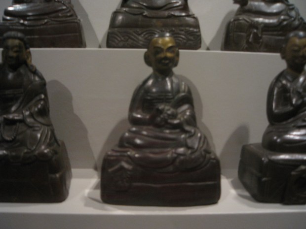 Deciding to take advantage of Friday night late museum hours, my friend and I made our way to the Rubin Museum of Art a collection of art from the Himalayas. After a quick drink in their K2 lounge buzzing with after work chatter, we made our way to the quieter hum of Gods and Buddhas. That’s where we found “The Lord and the Subjects Twenty-Five.” Disciples of the 8th century Tibetan teacher, Padmasambhava, each figure represents the devotee and the ability they achieved through their dedicated practice of Tantric Buddhism. Lang Palgyi Sengee was able to make rainbows appear in the sky, Drubchen Khyluchung Loba who was able to attract birds and teach them Buddhist doctrine, and of course my favorite, Ma Rinchen Chog, pictured above, was able to levitate cross-legged and make even stones edible. Seemingly unattainable, at least it’s something to work towards.
