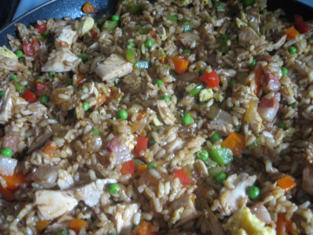 I hold take-out chicken fried rice responsible for the freshman 10 I gained in college (except it was closer to 15 and I was a senior).  While others may dabble, I know I can’t stop at a pint and have largely avoided it for years.  However, since I’m preparing to run a half-marathon this Saturday and need to eat carbohydrates covered in soy sauce, this kind of indulgence is not only permitted, it’s encouraged.  Plus, I’m stronger now.  The stars seemed to align for making my own when I found a recipe on Laylita’s recipes, one of my favorite sites, for chaulafan de pollo, a popular Latin American version of fried rice popular in Ecuador and Peru.  This is the first time I made fried rice at home and at first glance it seemed like standard take-out – chicken, peas, scallions, carrots, eggs.  It was the seasonings like achiote, chili, cilantro, and more cilantro that really set it apart.  My favorite addition though were the raisins.  Not sure how they would blend, they were like tiny, interspersed packets of plum sauce.  Served with sliced avocado as suggested, it’s the perfect light meal to enjoy in moderation.  Starting tomorrow that is, right now I just want more.