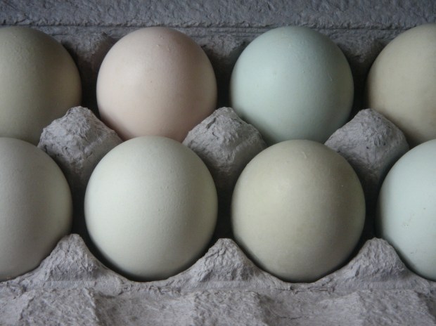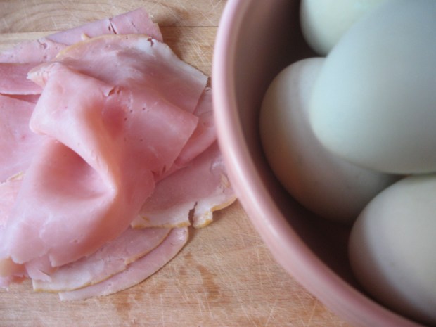 Deciding it was a good excuse for green eggs and ham, I went to the farmer’s market early to secure a dozen. Slightly richer than regular eggs, I try to buy them once every summer in honor of the Araucana chicken that gives herself the luxury of laying pastel colored eggs.