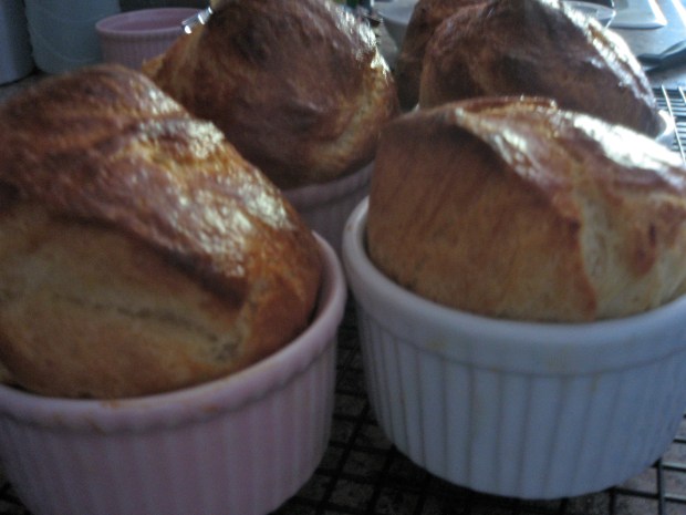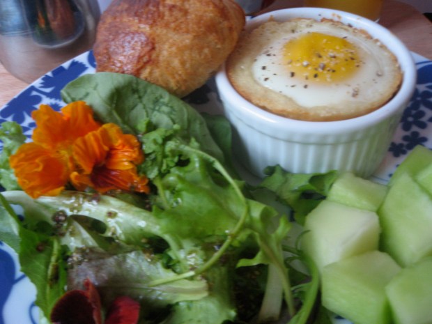I set the rolls in ramekins to bake at 350 degrees till the eggs were set, about 10-15 minutes. The result was close to croque madame but with sweeter bread, a croque señorita perhaps? More importantly, they were the way my mother remembered them.