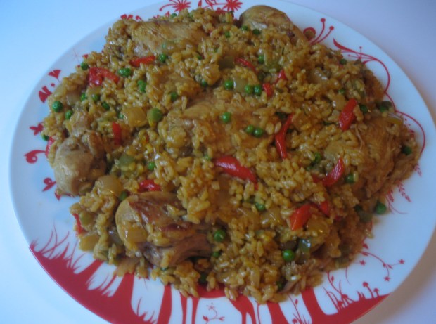 I’ve made this often and decided to look at all the different versions I had to pick and choose my favorite elements from each.  It was too many cookbooks in the kitchen, and I was in a rush.  Instead of arroz con pollo, I ended up with arroz con mango (“a mess”).  Remembering that it’s meant to be an every day family dish, I tried it again but taking my time and keeping it simple.