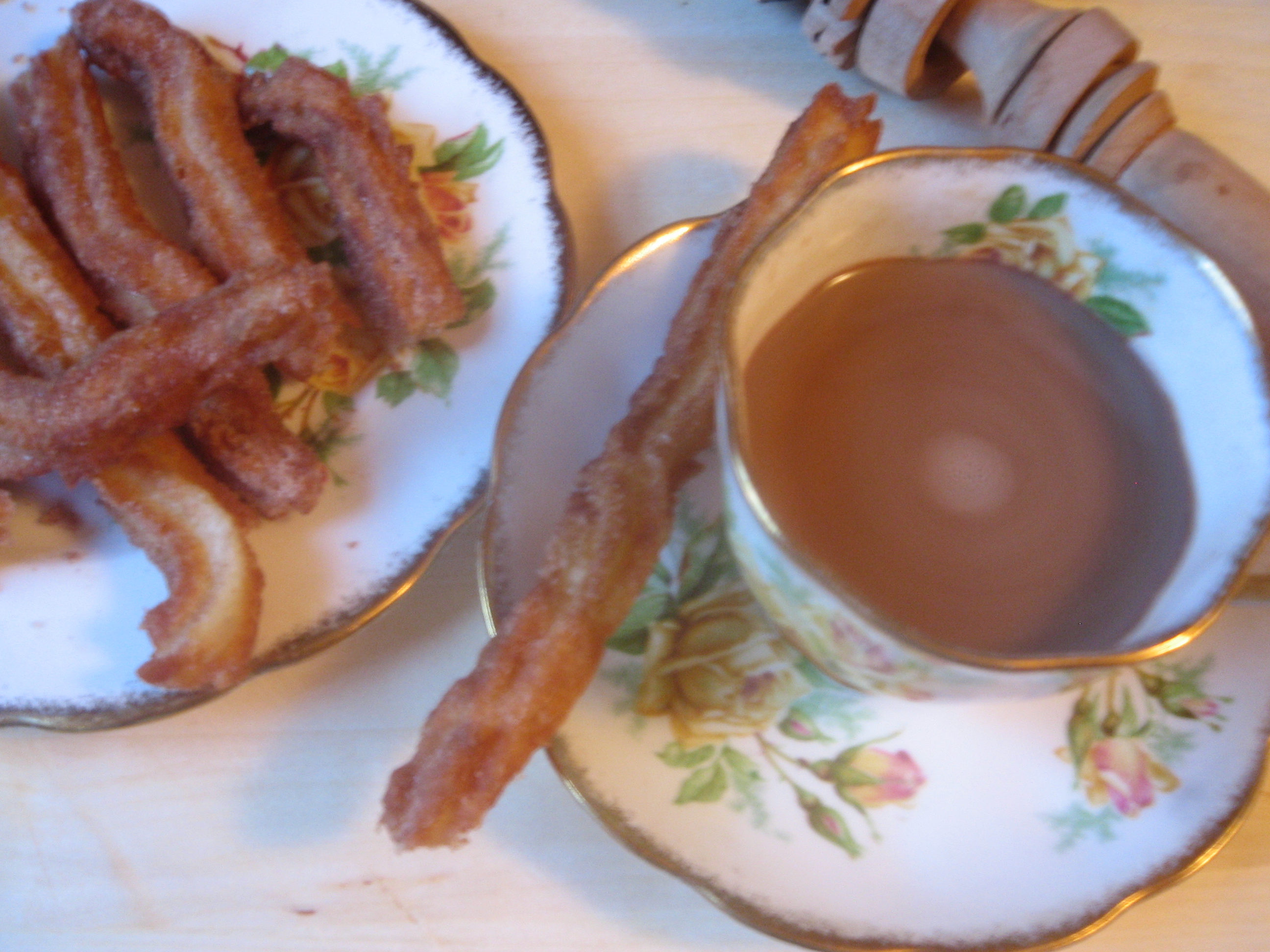 I think it’s the special occasion quality I associate with churros that keeps me from buying them in New York (though I’d never pass them up in Madrid – I’m not crazy). Yesterday, deciding I needed a little Christmas now, I brought out the churrera, that my mother who hates to cook but loves kitchen gadgets sent, and my monster of a deep fryer to make my own. Churros go from blisteringly hot to too lukewarm in a few seconds, like a puppy that growls first then licks your hand, so it was great to have them fried, sugared, dipped and eaten straight away. Making it snow in my apartment was easier than I expected, and I’m looking forward to having friends over for churros and chocolate over the chilly months ahead. I loved the churros but missed the crowds.