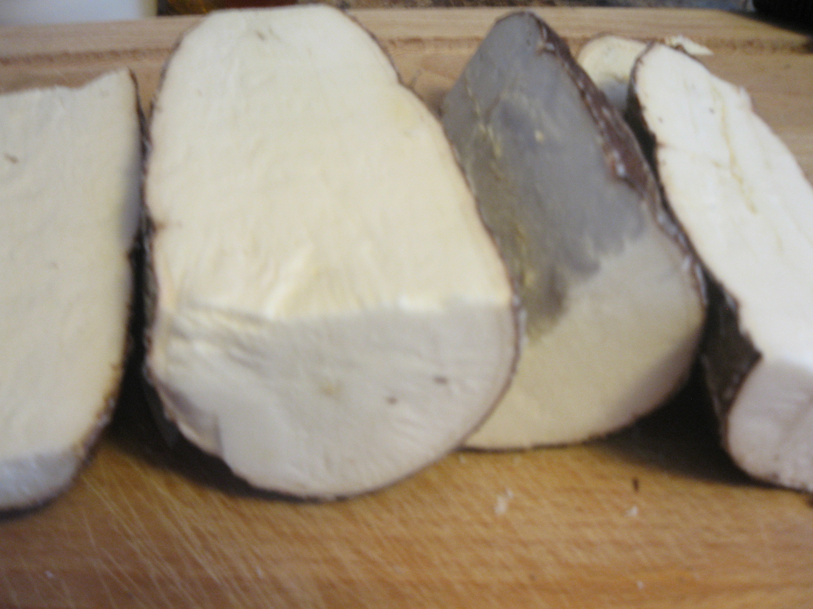 Peal and chop yuca and malanga into chunks. Cover with water and 1 teaspoon of salt. Bring to a boil then lower heat and simmer covered an additional 20 minutes till tender. Force through ricer or food mill into sheet pan while still warm, spreading in an even layer. Cool completely.
