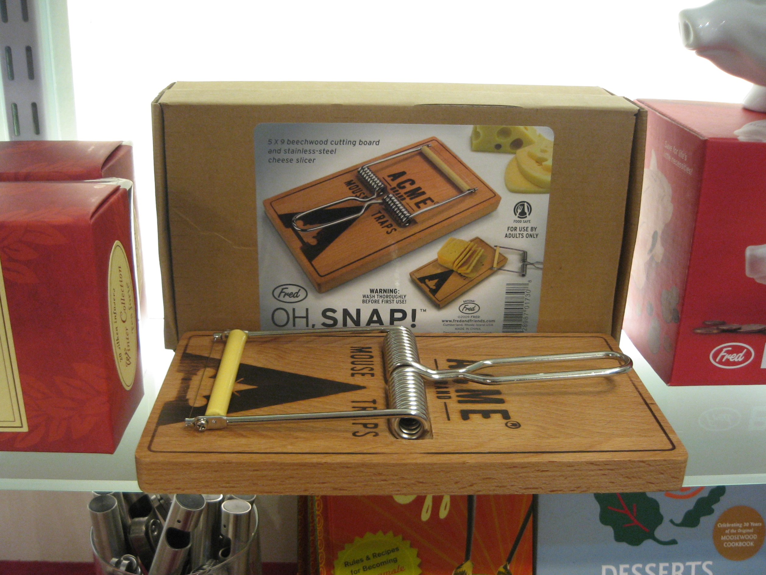 Exit 9 would be The Shirelles, sweet with a drape edge. They always have a handful of the cool kids cookbooks to flip through and changing selection of essential kitchen gadgets like a gun-shaped egg fryer ($8), Divide & Pepper shakers ($10), and Bombs Away shot glass ($22). My personal favorite is the Oh Snap! Moustrap Cheese Slicer ($14.99). Not that I suggest springing a trap on your guests, but would if hurt if they think you just might?