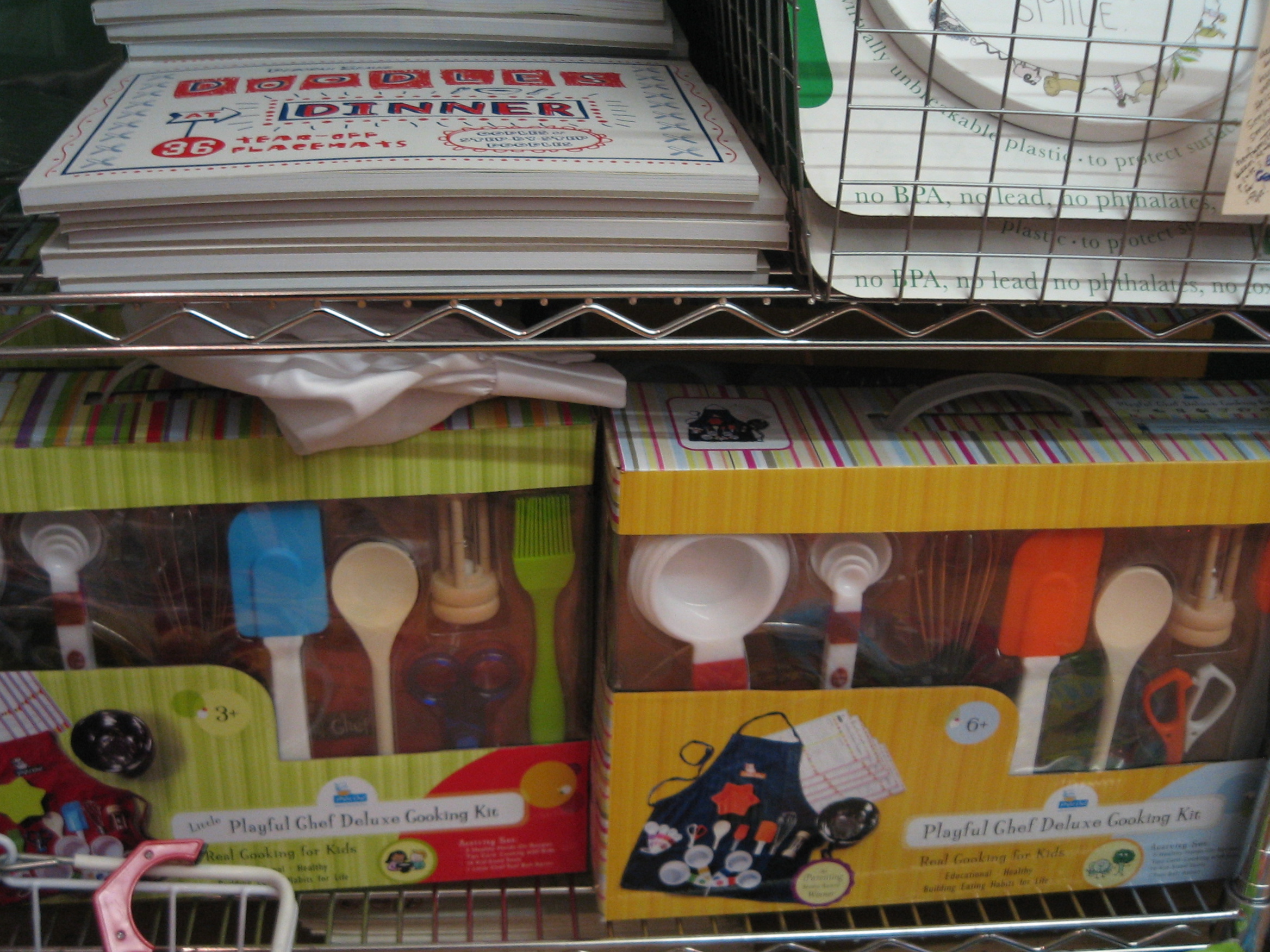 last hold-out where we used to beg my grandparents to take us. If I was a kid now, I’d probably beg them to take me to the Blue Ribbon General Store. It’s the perfect mix. Spy glasses, candy dots and lady bug tea sets alongside wine bottle thermometers ($12.95) and wool and cashmere shampoo ($18). Thinking practically, I could use the 6-piece nesting bowl set ($34) though I have to admit that my heart raced when I saw the 6+ Playful Chef cooking set ($39.99). If I could add it to my Christmas list in 1981, I would.