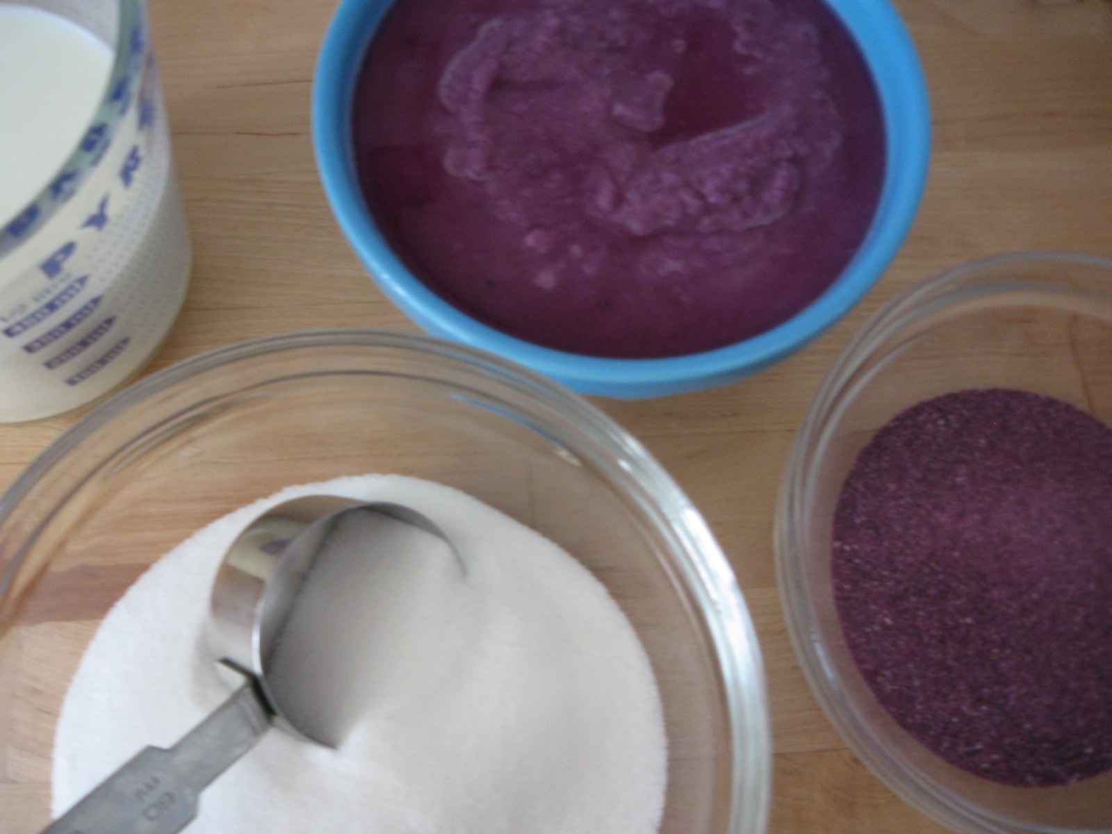 With the weather warm enough to wander – head-up, ballet flats, scarf-as-accessory – I took the long way to Soho through Chinatown. I couldn’t have been happier if there were actual leaves on the trees. I was having my first scoop of outdoor ice cream (red bean) from the Chinatown Ice Cream Factory when I decided to look into a few grocery stores to find the ingredients for ube ice cream. Made from a purple yam native to the Philippines, I tried it for the first time last Spring when I did a market tour with my blogging group that ended with us making a traditional Filipino meal led by Chef Annette Tomei at the French Culinary Institute. With a new tour planned for this weekend almost a year later, I couldn’t wait another minute and decided to break out the ice cream maker.