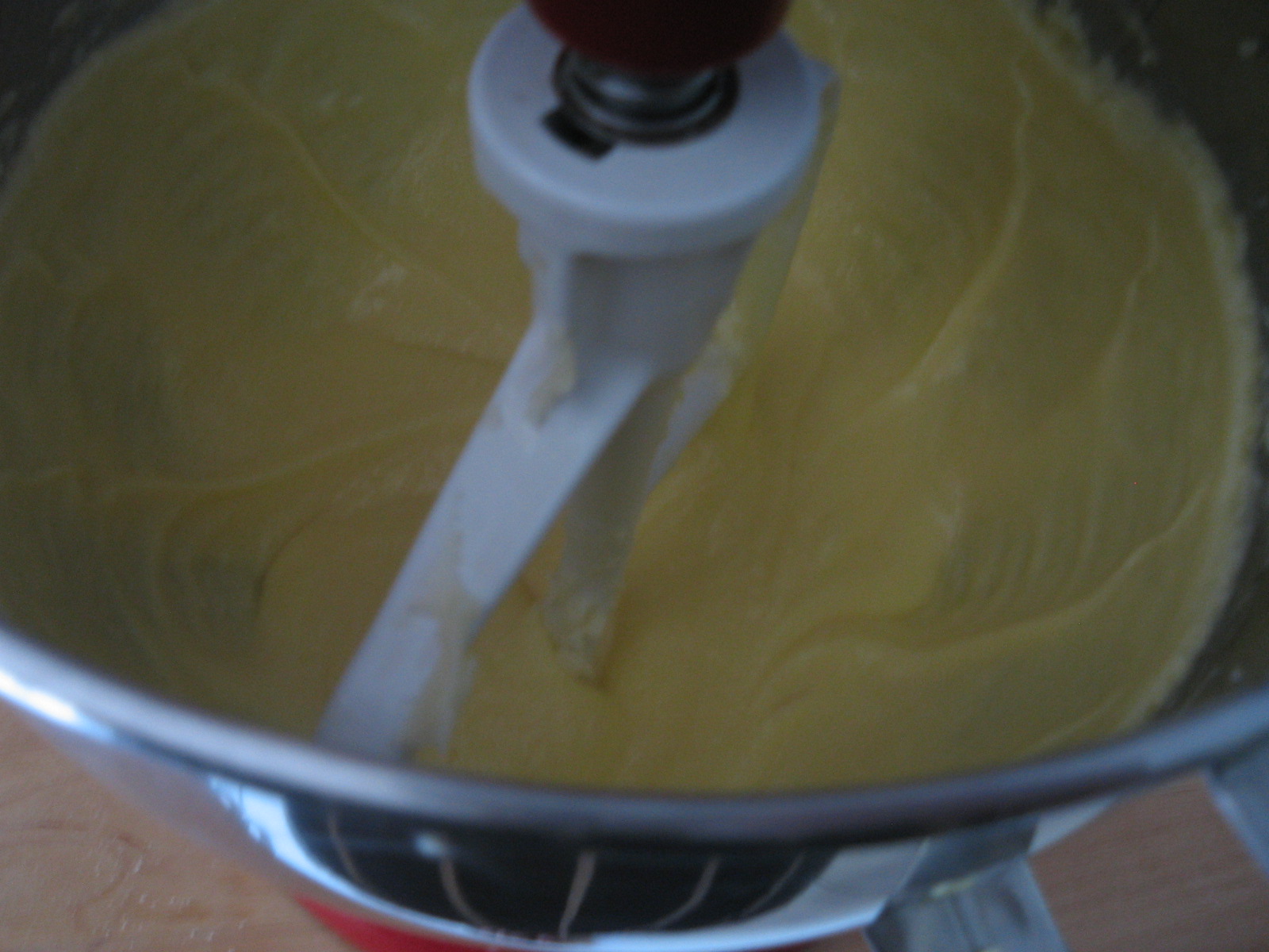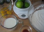 In a stand mixer fitted with the paddle attachment, beat together butter on medium speed for one minute.  Gradually add the sugar and continue to beat on medium-high speed till light and fluffy, about 5 minutes.  Add eggs and yolk one at a time, beating for about 30 seconds after each addition.  Beat in vanilla and lime zest.  Batter may separate.  On low speed or by hand, add flour mixture in three batches alternating with the buttermilk and ending with the flour.  Do not over mix.*