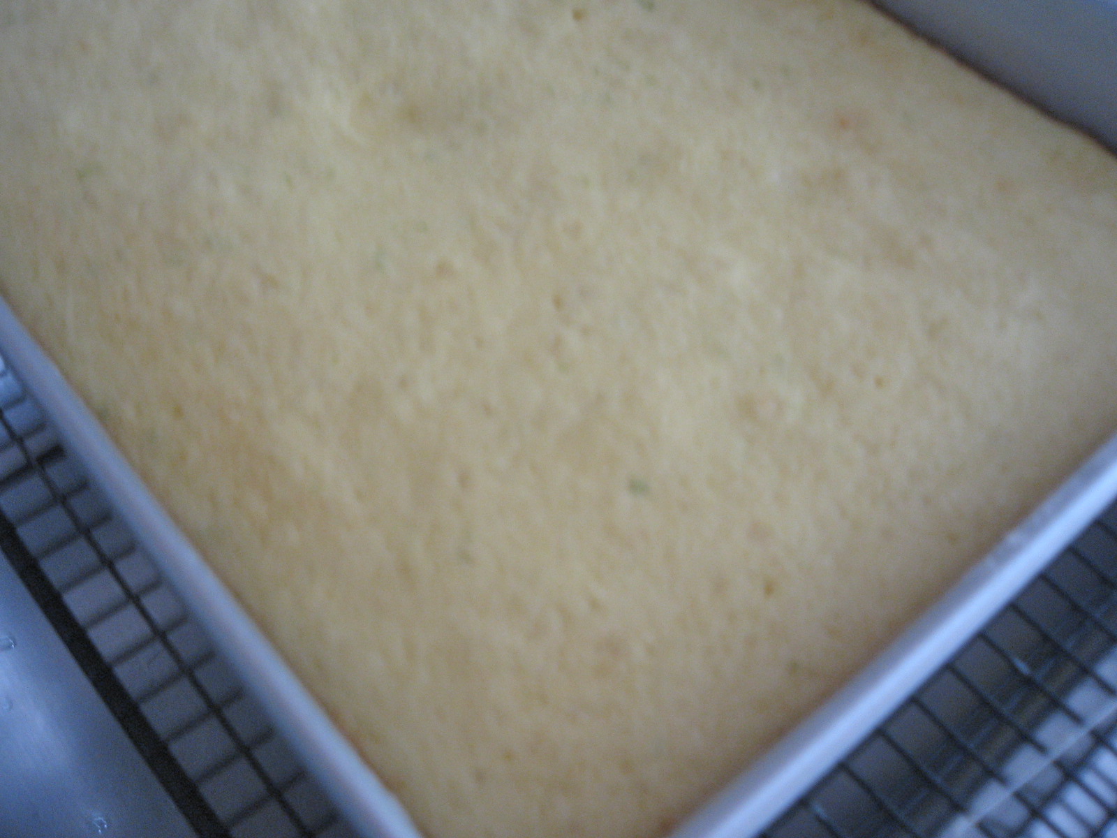 Pour batter into sheet pan and bake in a the middle of the oven until a tester comes out clean, about 25 minutes.  Remove from oven and cool on a rack for about 5 minutes.  Unmold and set upright on cooling rack until room temperature.**