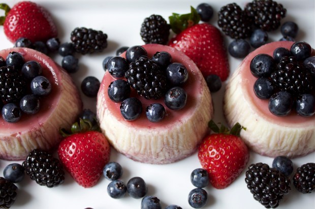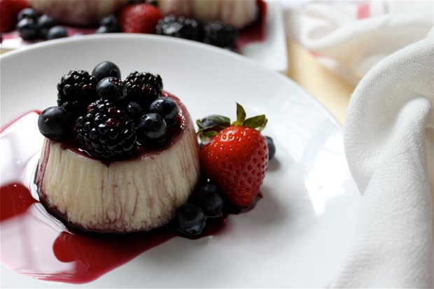 Remove lemon rind and stir in the vanilla. Pour into moistened individual molds and let them cool until the pudding sets. Unmold and serve at room temperature topped with wine syrup and fruit on the side.