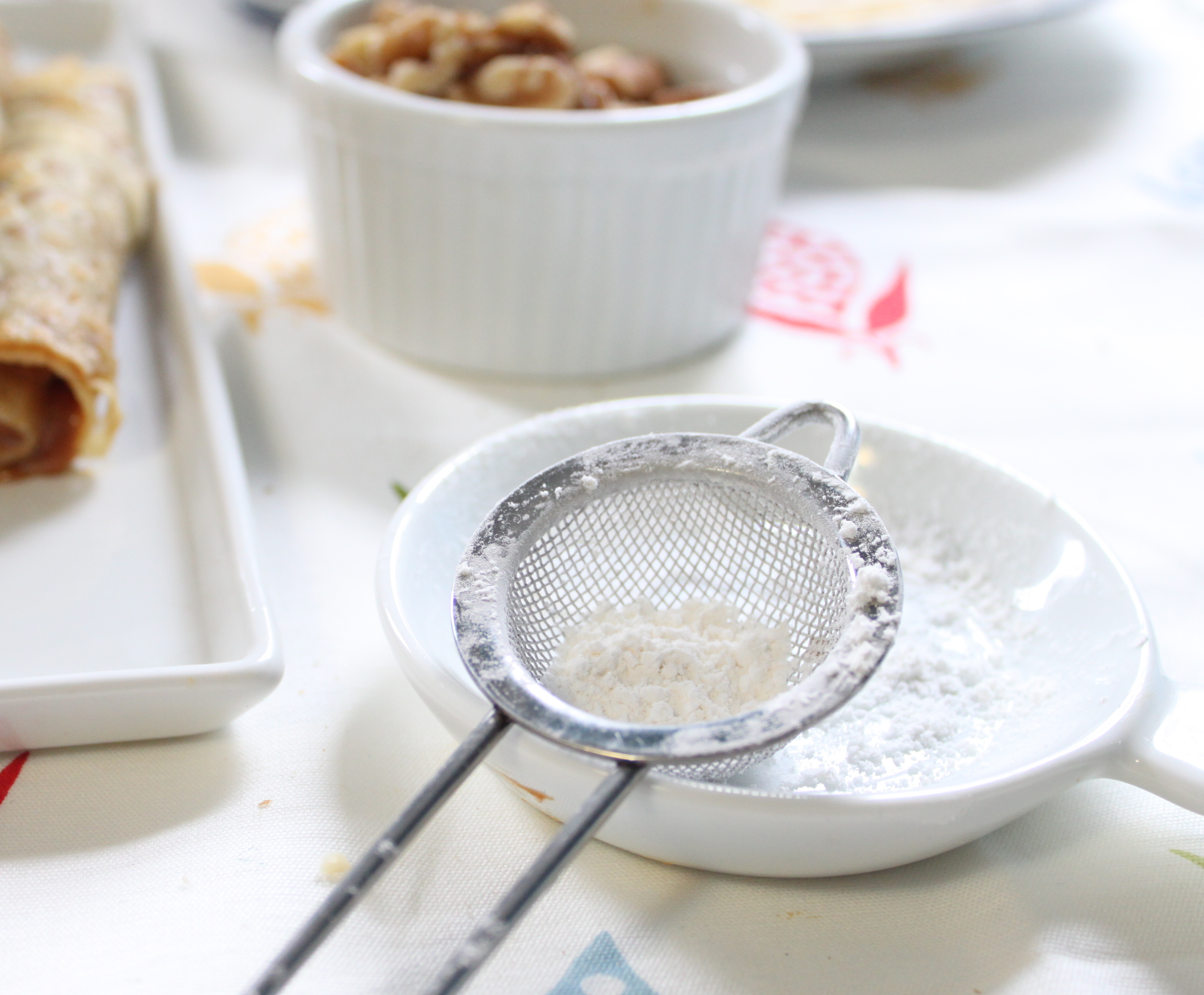 For the crêpes, I followed Julia Child’s recipe for Pâte à Crêpes from Mastering the Art of French Cooking. Quickly blended then allowed to rest, I used half the batter for dessert and used the remaining crêpes for leftovers.