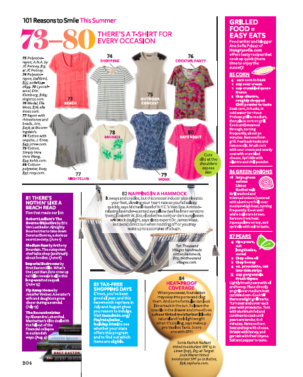 A few weeks ago, I was very excited to give Michelle Hainer for InStyle, #85-87 of “101 Reasons to Smile This Season” for their July issue, which just hit stands. Used to being the lone voice on my blog, it was a thrill to see my recipes for grilled corn with chili, green onions with lime, and pears topped with prosciutto and Gorgonzola, tucked into the pages with sky high wedges, gingham tops and the new Javier Bardem movie. You can never have to many reasons to smile so I hope you’ll pick up a copy and also take advantage of the other 98.