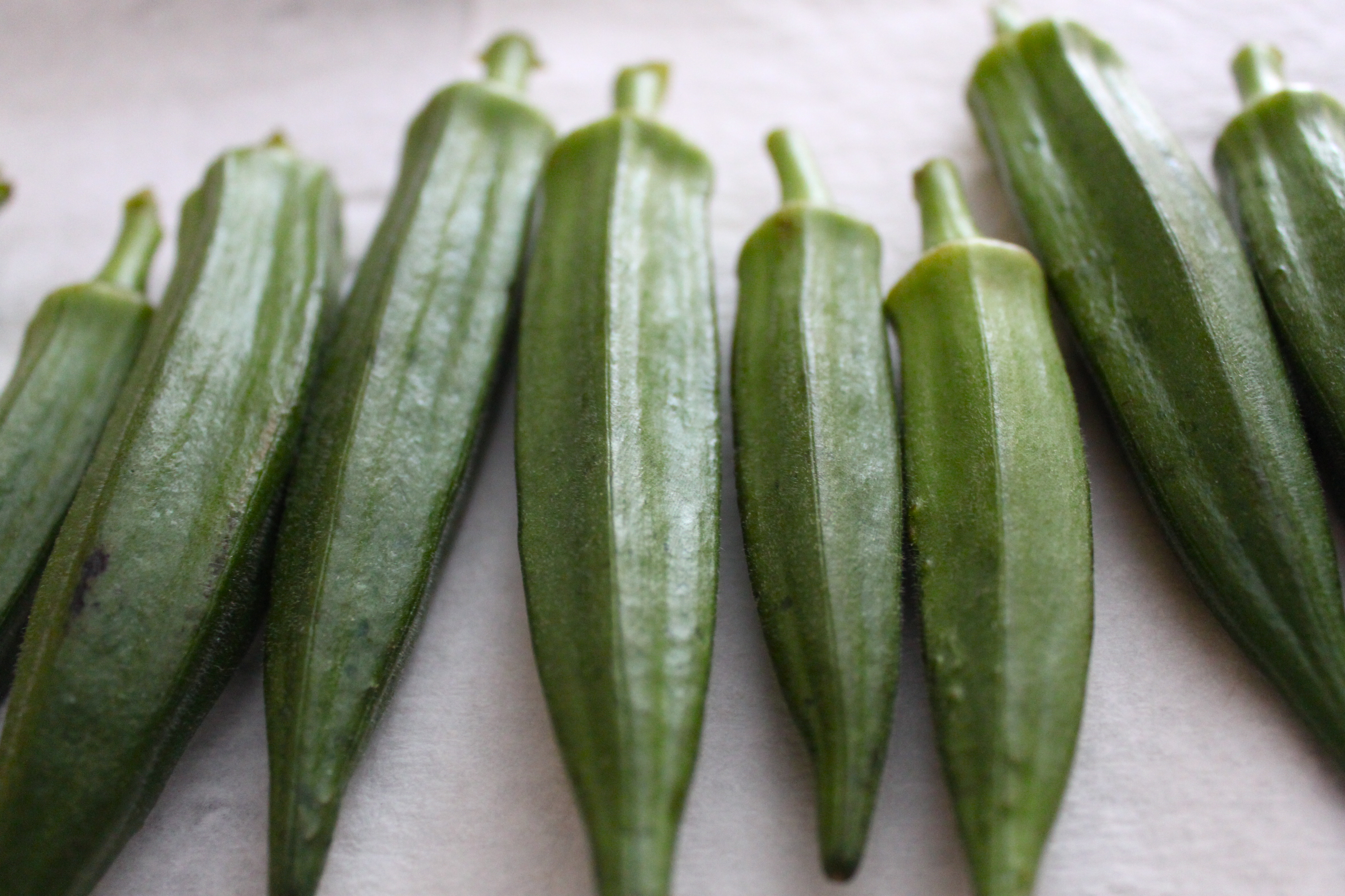 Taking the long way home through the farmer’s market at Grand Army Plaza after my morning run, I saw an enormous pile of fresh okra. Bright green, firm and unblemished, it had little to do with the frightened batch I’d scared up last winter when I wanted stew. It had been awhile since I’d gone to the market list-less, looking for nothing in particular and everything at once. Eating seasonally has become such an imperative (just the name locavore is intimidating) that it’s easy forget the immediate benefit of letting the greenmarket decide for you.