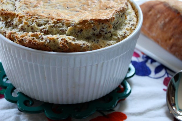 Nothing takes the fear out of making a soufflé like making three in a row. I found a recipe for one combined with amaranth that I couldn’t wait to try. My training for this year’s New York City marathon is nearing the 20-mile mark so I’ve been cooking up batches of amaranth to have on hand for cereal topped with honey and fruit. While adding eggs and cheese may not be the best way to enjoy my vitamin high grain, it sounded wonderful and I’d been so good.