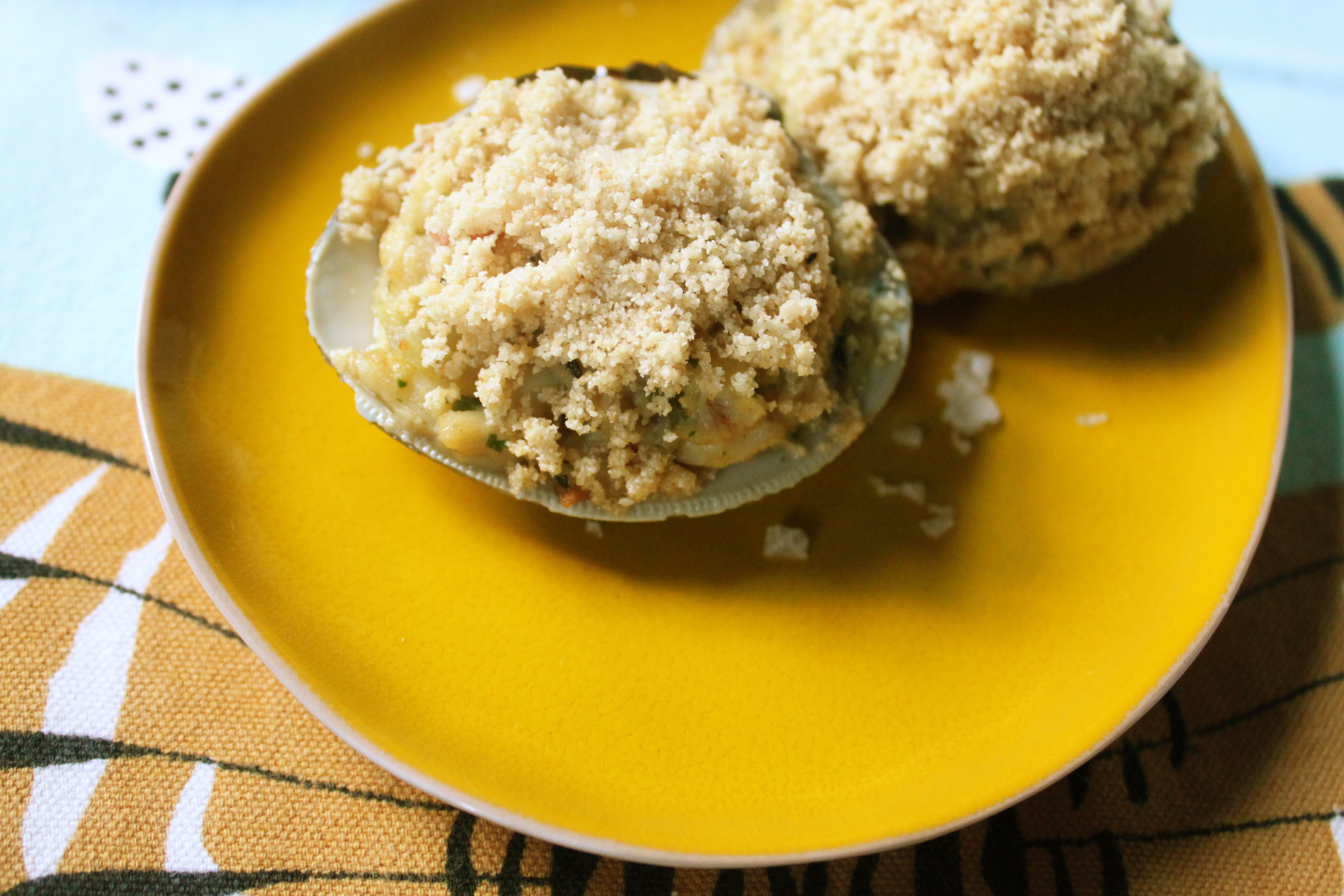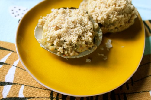 Recipe from The Brazilian Kitchen by Leticia Moreinos Schwartz, printed with permission. I’ve always been drawn to recipes that transform shells into serveware – pumkins, pineapples and now sea creatures. Leticia used scallop shells but crab and clam shells also work The guys at Fish Tales, in my neighborhood, were nice enough to set aside extra-large clam shells which worked perfectly. If you prefer, porcelain ramekins can also be substituted.