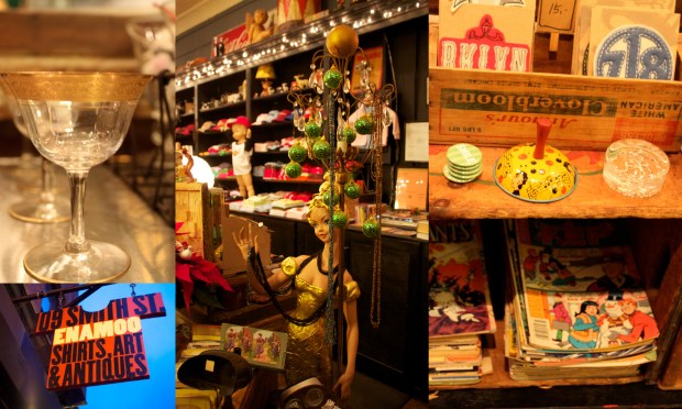 5. Enamoo (109 Smith Street, Brooklyn, NY, 718.624.0175): This t-shirt/art/antiques store could be voted most likely to reanimate after dark. You half expect the toys to start spinning, etched wine glasses ($19) to sing, and tree-top angel to float away ($57). If I was looking for a gremlin, I’d start here.