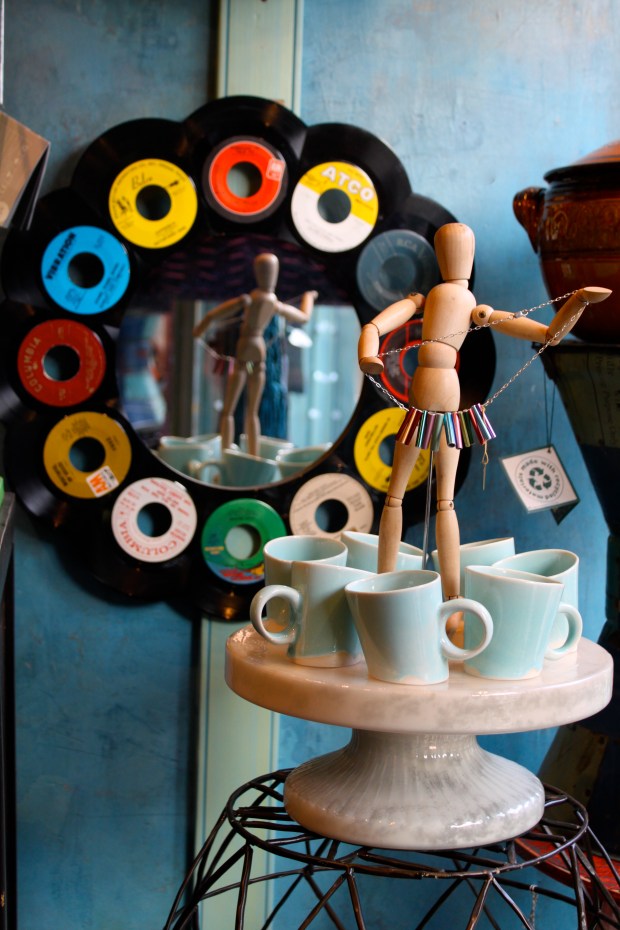 1. Mongo (246 Smith Street, Brooklyn, NY, 917.671.7696): I’d been eyeing the antique teapots form the 1920’s to the present ($29-$225) and slanted coffee cups (4oz/$48 set of 4, 8oz/$64 set of 4) on the cast glass cake stand for weeks when I finally went inside. Stocked like a walk-in curiosity cabinet, the windows are lined with vintage colored glass ($10-32) and it would be easier to list what they don’t carry.