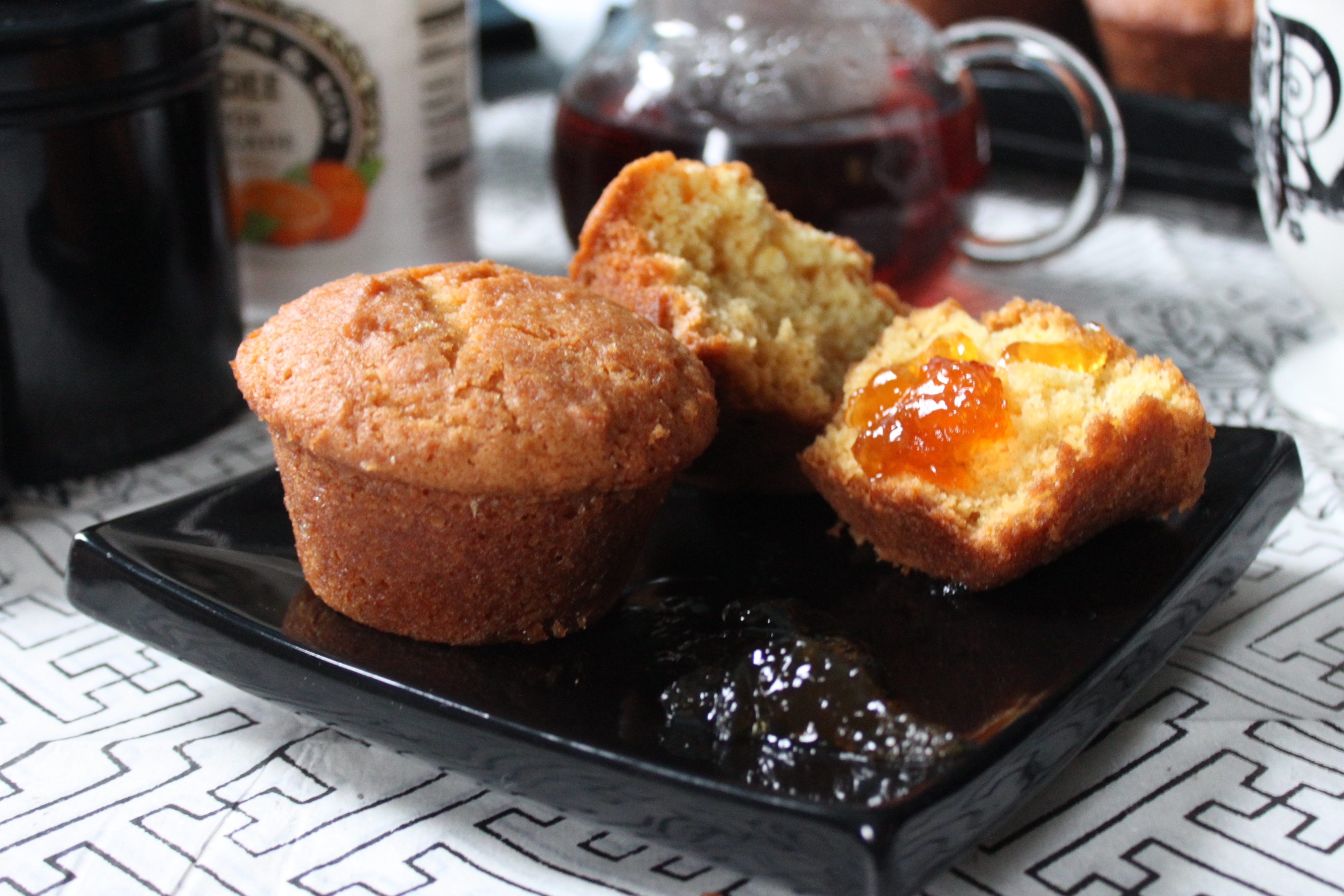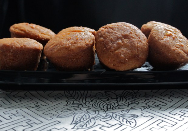 I knew that I wanted to add some orange and almond flavor and finally found a version to play with that included milk for added moisture. The crumb was even though they didn’t quite dome as prettily as Iwould have liked. While they were still warm, I brushed them with a quick orange glaze for additional sweetness.