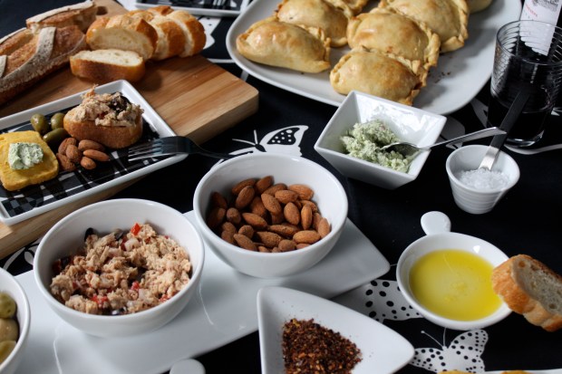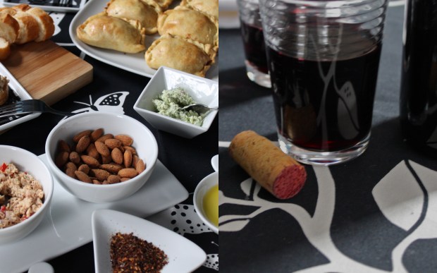 For the rest, I was going to round up the usual Mediterranean suspects – manchego, membrillo, prosciutto – but decided to go south instead – all the way south. I knew we’d probably skip dinner so I made sweet and savory pork empanadas from Chilean viticultarist Valeria Huneeus and galleticas de aji amarillo topped with a feta cilantro dip. Curious about other Chilean products, I made my way down to Soho’s Puro Chile and found tinned king crab ready for dressing and almonds dusted with merkén, a Mapuchen spice made from cacho de cabra (goat’s horn) peppers and blended with coriander and cumin. Similar to a smoky pimentón, it’s been making its way into everything since.