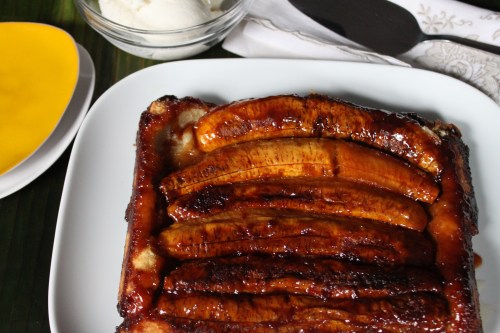 I was very excited to see my post up on the Cooking Channel‘s Devour the Blog yesterday. I’ll be contributing regularly over the next few months and hope you will make the jump with me. It was my first visit, so I gave a lot of thought about what to bring before deciding on a pastelón de platano maduro. It had been awhile since I’d made one and I was dying to update one of my favorites, especially since I’d discovered recao and ajicitos tucked in between the parsley and peppers at the grocery store. Once it was baked, photographed and eaten, my mind went to the plantain recipes I hadn’t tried. I’d made tostones on the fly, mariquitas when I was feeling restless, and tortilla de platanos maduros just because. With a bowl full of plantains that were just past ripe, it was time for dessert.