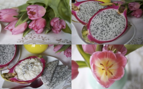 Of course in a film full of swoon worthy food, the scene where she cooks with rose petals is the swooniest. Reading over Laura Esquivel’s novel and some of the ingredients she listed – roses (preferably red), anise, honey – I had something sweet in mind and decided to make arroz con leche. After adding the ground anise and letting is cool, I set out a few different toppings to try every possible combination – from chestnut honey to diced pitaya – the blank slate of rose infused pudding mingling beautifully with anything I wanted to add, depending on who I felt like being just then.
