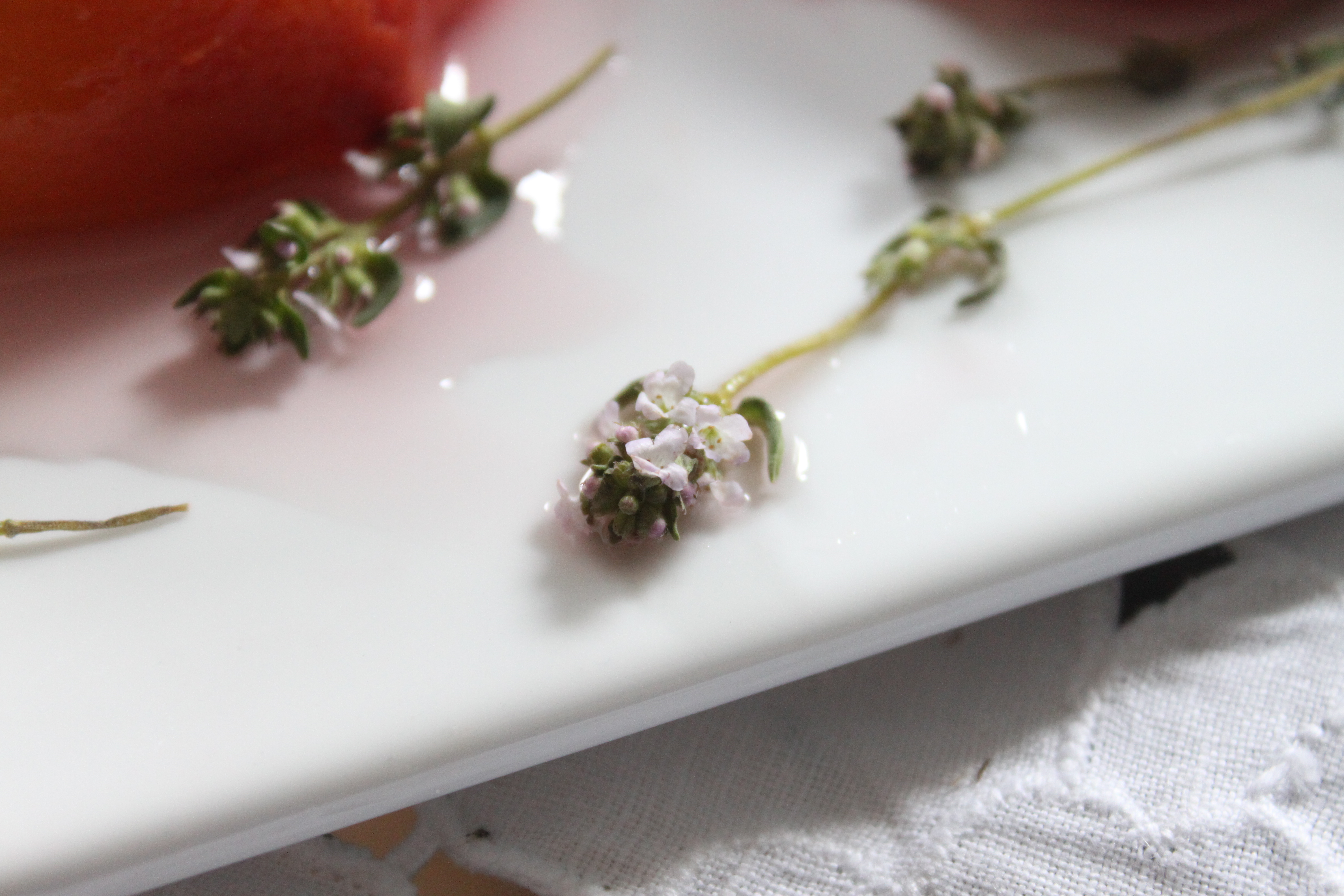 The original recipe called for canned peaches but by poaching them I could make it as sweet as I wanted and infuse the peaches with any variety of fresh herbs, honey or wine I wanted. The result wasn’t too different than the syrup soaked peaches and cream I remembered growing up – bright gold but drizzled in pink, firm but quick to break apart, sweet but fragrant, theirs but mine.