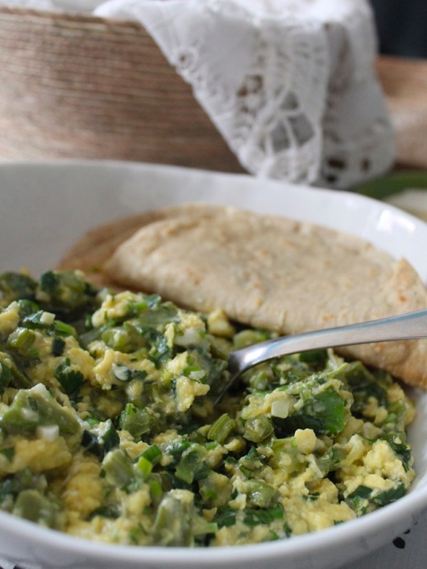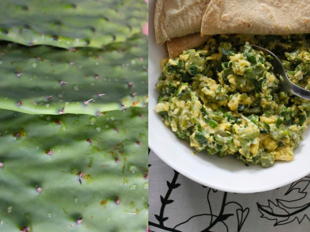 There is actually a recipe post that I am preparing as we speak for Huevos con Nopales y Cilantro/Eggs with Cactus Pieces and Cilantro.
