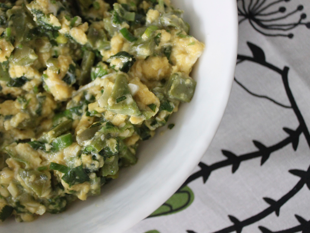 Huevos con Nopales y Cilantro/Eggs with Cactus Pieces and Cilantro