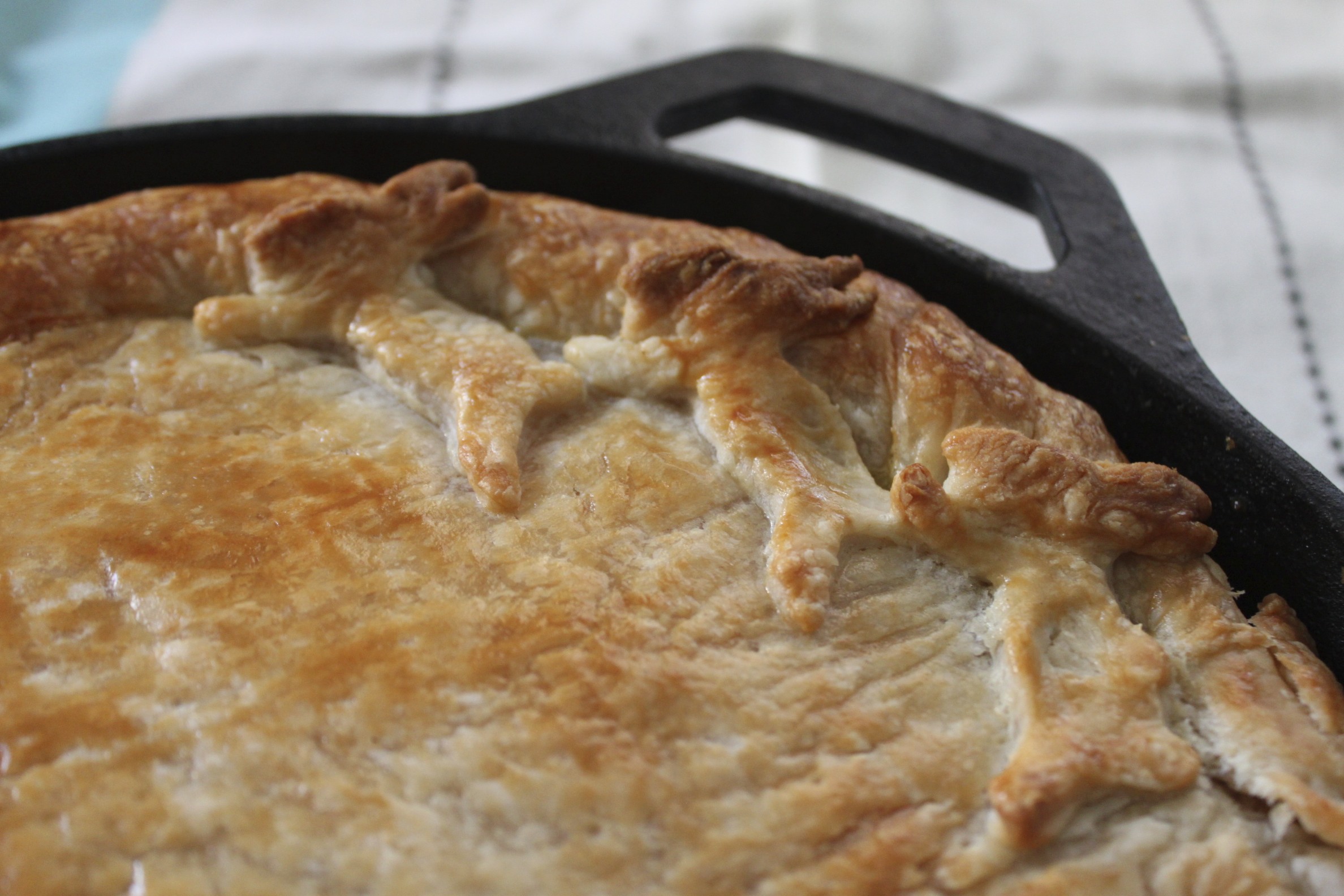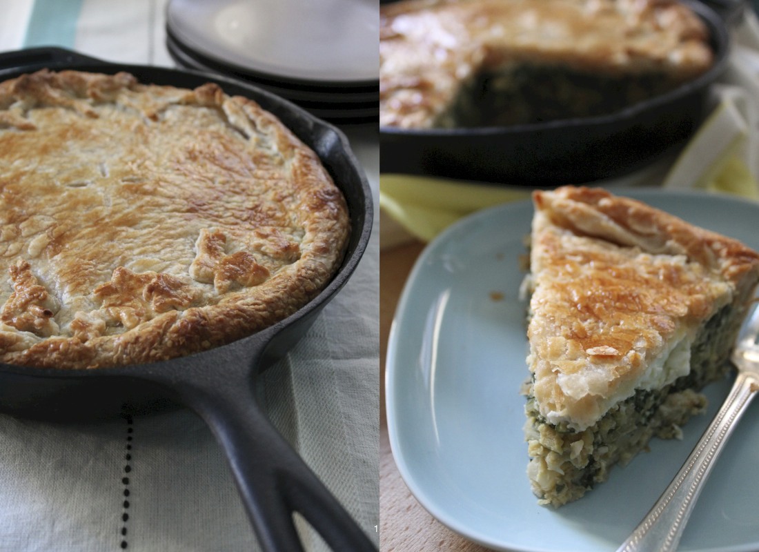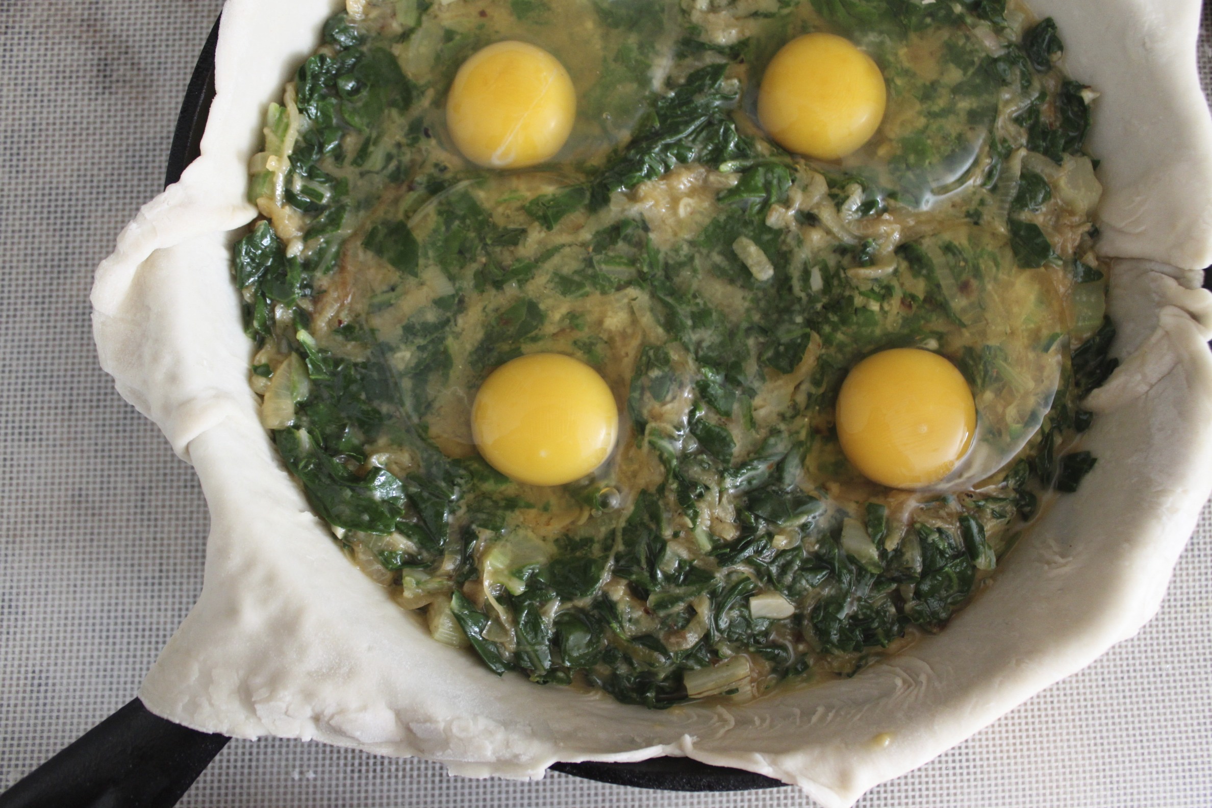 Adapted from Seven Fires: Grilling the Argentine Way by Francis Mallmann.  This is one of my favorite cookbooks, but I gravitate towards the recipes that don’t involve building a pit of fire – out of necessity only.  In his version of the pascualina, he substituted empanada dough for the 33-layers of pastry but I used puff pastry instead.  I also wanted the pie to have a little more depth, so I baked it inside an oven-proof cast iron skillet.  A tart ring or springform pan should work as well.  I’d recently found an Argentinian Parm which is creamier than the Italian and less expensive that worked well but other recipes called for spinach and a combination of cheeses like ricotta and mozzarella.