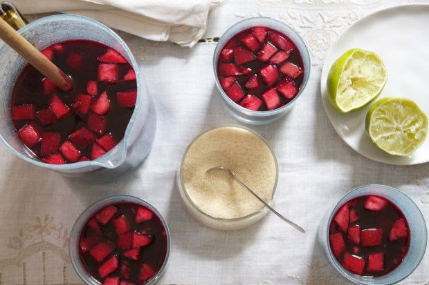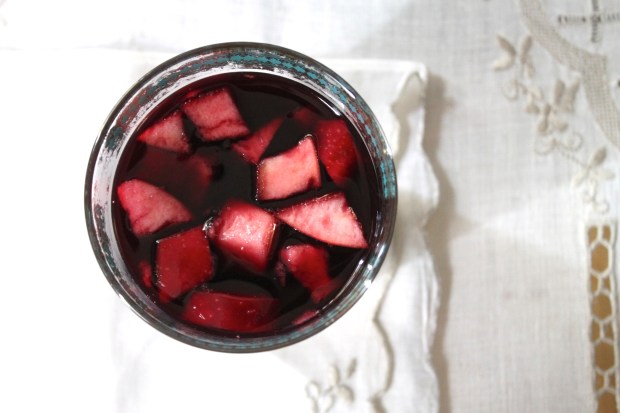 Made from purple corn set to simmer with spices and fruit peels then blended with lime juice and sweetened with sugar, its credited with anti-inflammatory and anti-oxident properties apart from being incredibly refreshing. Focusing on what I had on hand instead of what was coming, I stocked up on bright red Rome apples and picked up a pineapple. I’d heard from few sources that pineapple rind was a good source of Vitamin C but had never found a palatable way to use it until now. Setting it in a pot, I watched it go deep purple. I wasn’t sure what to expect but the blend of warm spices like cinnamon and clove with bright citrus was wonderful – the flavors getting stronger and deeper as it chilled. If I couldn’t eat spring just yet, at least I could drink it.