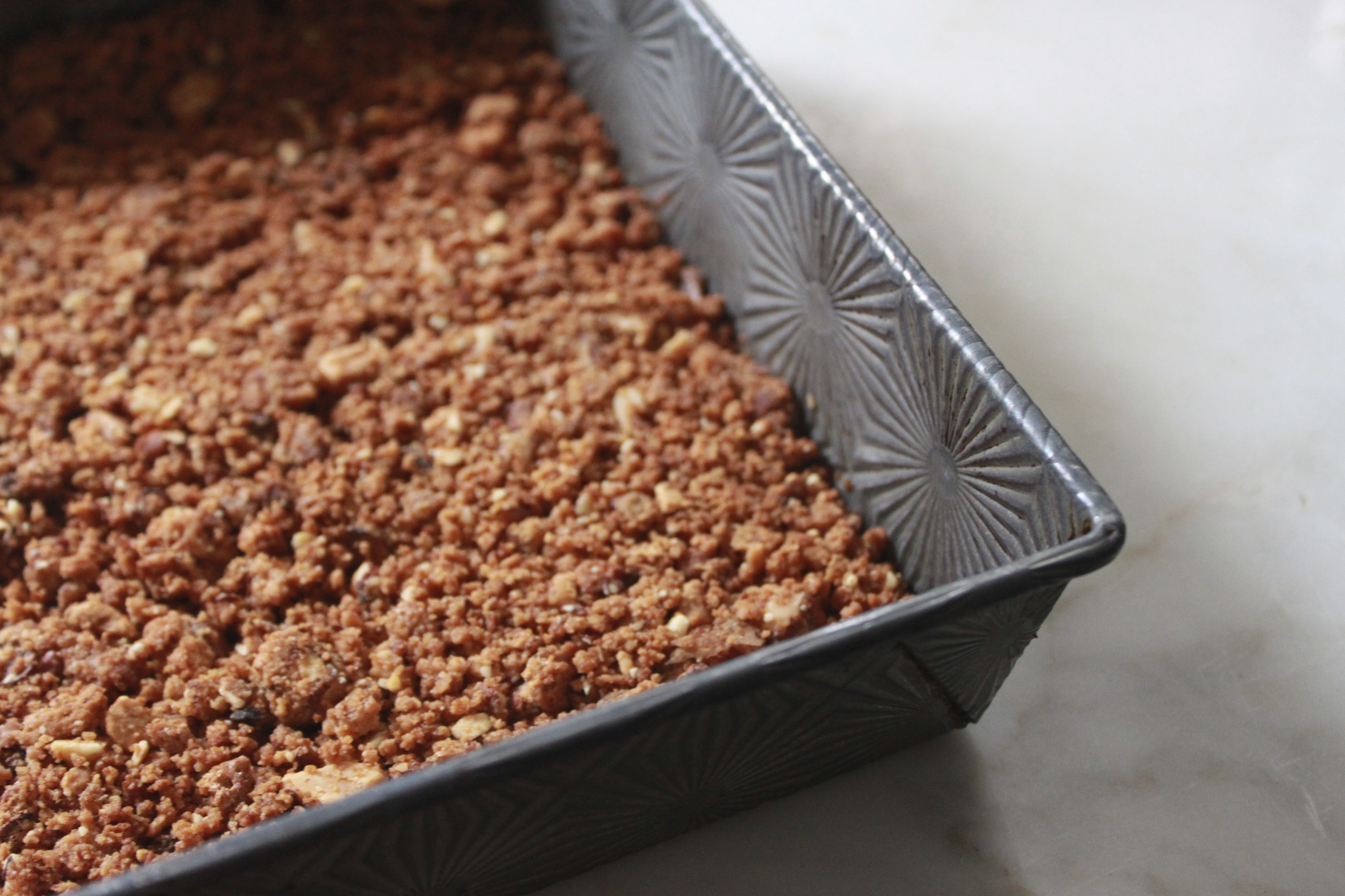 Preheat the oven to 350 degrees. Grease a 9-inch square baking pan with non-stick cooking spray.