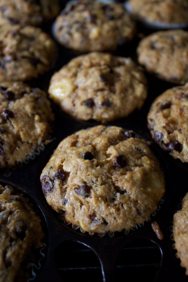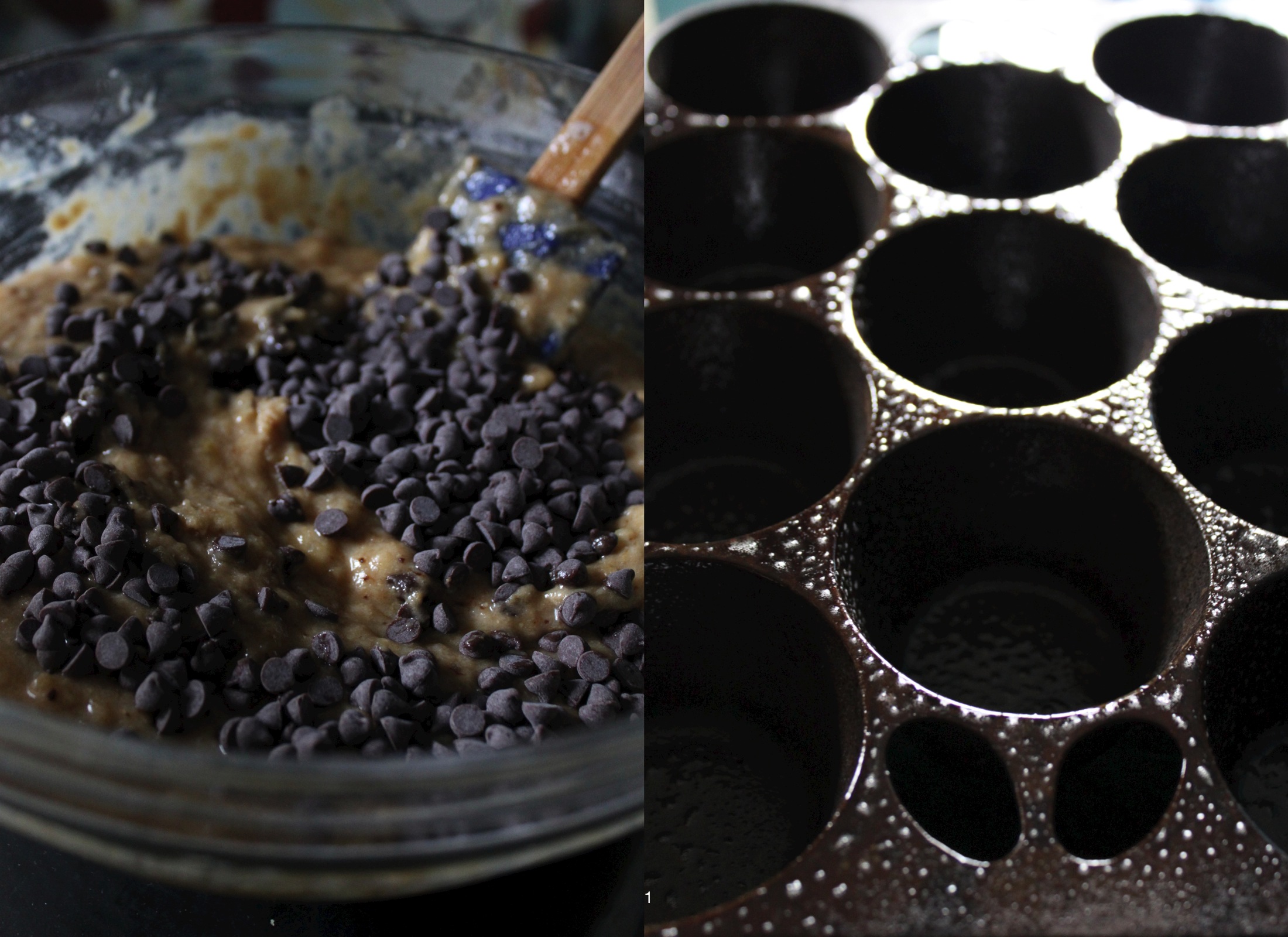 When I woke up the next day, there were some fallen trees, but the power was still humming.  Looking for a way to keep busy and feeling truly safe and relieved for the first time in days, I decided to bake it out.  Remembering Andrew, I’d only bought food and supplies that would see me through a Walking Dead-like scenario.  Keeping up with friends on Facebook, I was amazed that so many spent the storm making elaborate meals or stocking up on groceries that would melt away in the event a of a power outage.  I’m always looking for the next new cookbook, but this time I wanted to enjoy the familiar.  Picking up one of my favorites, Baked: New Frontiers in Baking by Matt Lewis and Renato Poliafito, I zeroed in on their banana espresso chocolate chip muffins.  In retrospect, it seems like an odd thing to do, but please remember that I was going nowhere soon.  I had time, I had energy, I had exactly four bananas.
