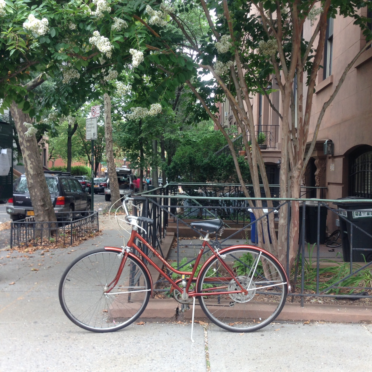 I think my relationship with New York is steady enough that I can admit we’d recently hit a rough patch. I’d spent so much time away last year that it felt like I was living consecutive winters. It wore me down and I took it out on the city that had become all work. Now that we’re having this beautiful summer, every day comes closer to New York’s song-and-dance ideal and I’m in love again. I even gave in and bought a new bicycle -albeit one that is technically older than I am – a copper colored Schwinn Suburban step-through with an honeywood basket. It’s heavy, impractical and my favorite thing in the world right now.