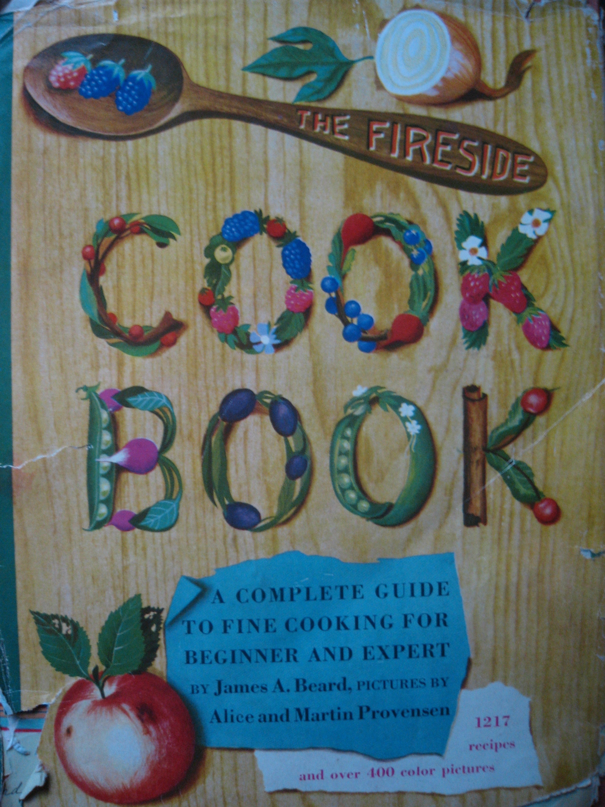 Some books seem more alive than others. I found this 1949 copy of James Beard’s The Fireside Cook Book today in a used book store. Banged up and worn through, it was love at first sight. Opening with description of prehistoric man enjoying a salad, he then compares the caveman’s roasting of a saber-tooth tiger to the modern housewife making Sunday dinner. The illustrations by Alice and Martin Provensen – turtle troubadours, snatches of music, lobsters taking swigs from wine bottles, foxes teaching hen school, devils and angels – keep pace with the text. I’ll have to read it cover to cover to find out why those clams in booties are attacking that chicken with pitchforks. While his love of the old world is evident, his Whitman-like enthusiasm for new world American pulses throughout. Everything about this book makes you smile. Read more