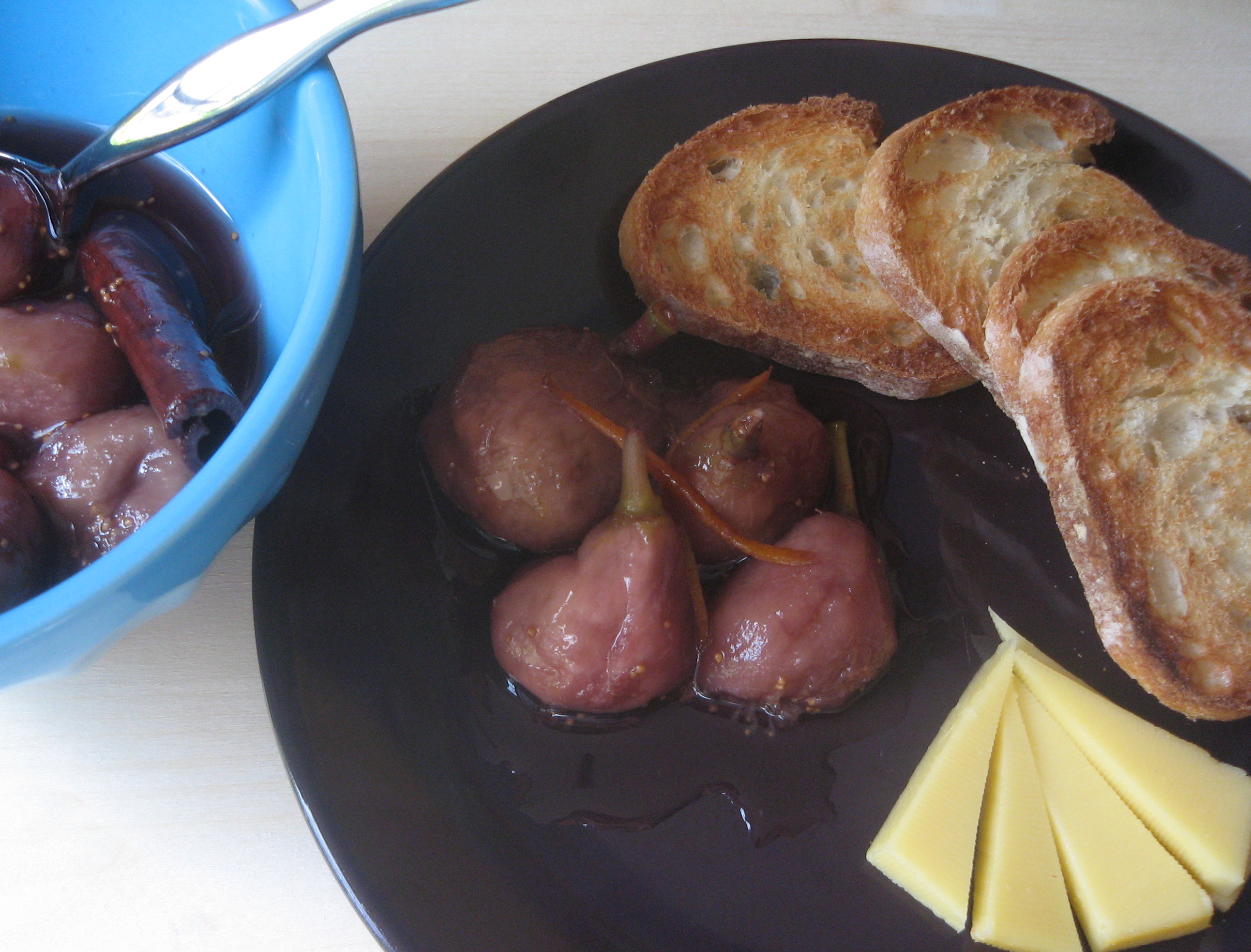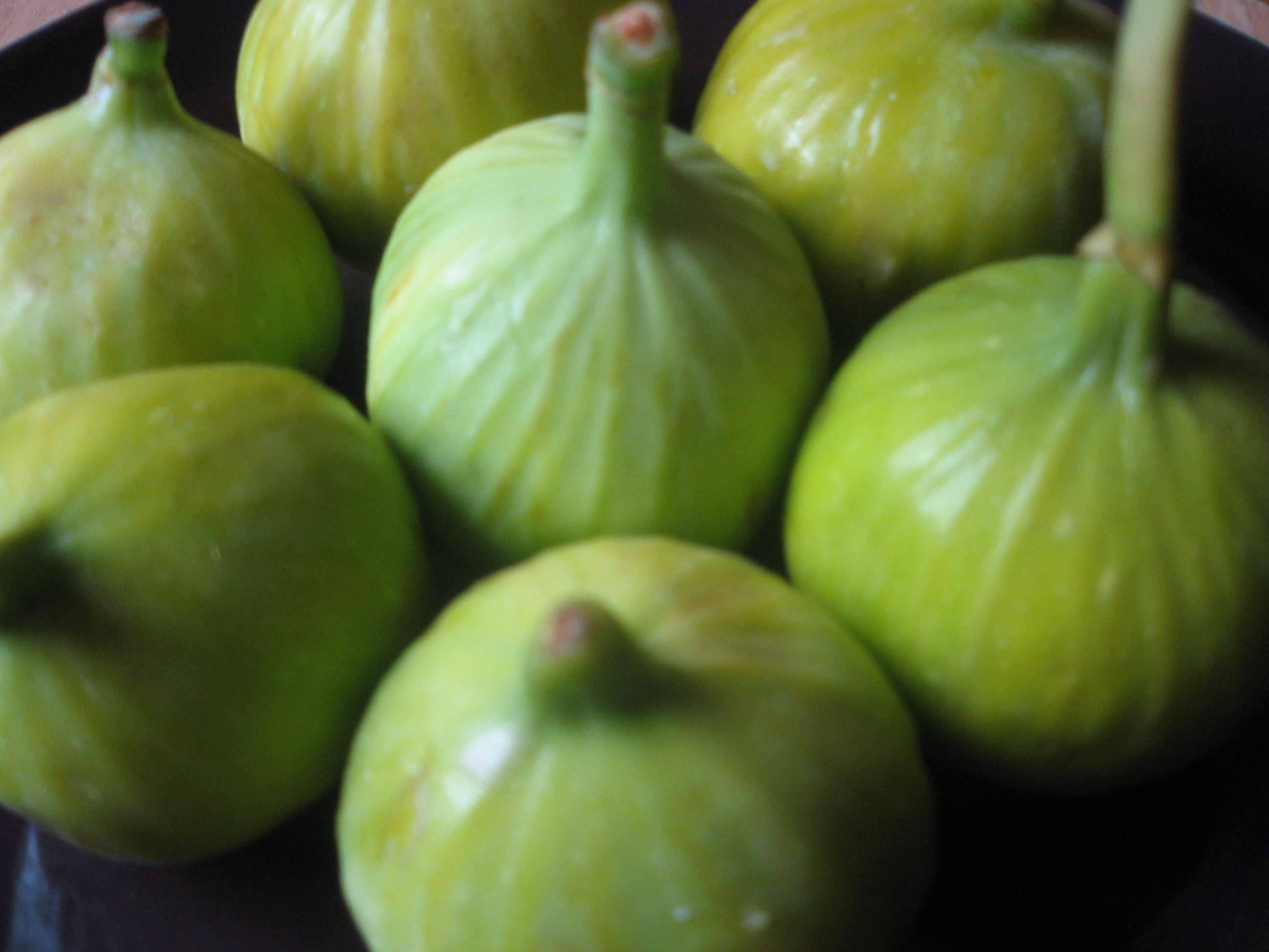 A friend coined the term produce shopaholic on her blog, Mindy’s Recipe for Disaster. If I’d read her post earlier, I may have recognized the symptoms before I went on a why-not-bender at the Park Slope Food Co-op yesterday. Though I love figs, I rarely buy fresh ones. I have plans for tarts and compotes, but the slightest delay and they’re past all use. Still, I couldn’t resist when I found organic Calimyrna figs. I reasoned that the green ones would at least give me a head start, and they were so cute and plump I had to take them home. A quick search online and through my books gave me a couple of ideas. I had some this morning drizzled with peppered honey and Spanish goat cheese with sweet olive oil crackers. It was sweet, spicy, flowery and creamy all at the same time. The recipe from Bon Appétit could not be easier, so there is no reason to put off using them straight away. I also found an interesting recipe for fig compote with red wine and spices among the formidable 1080 Recipes, one of my favorite cookbooks/step stools that I’ll try next. Now that I’m hooked, I’ll need more figs.