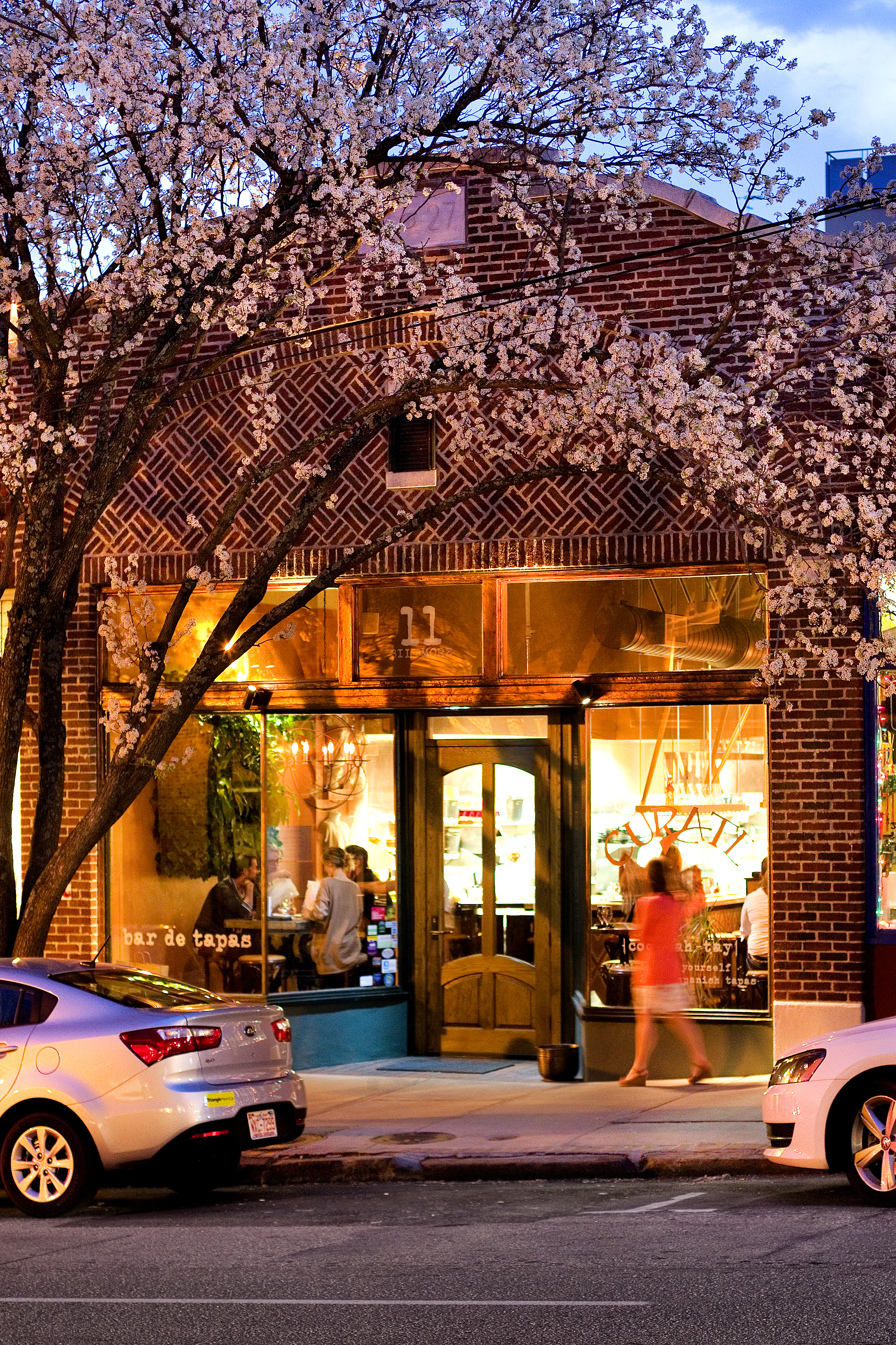 It’s one of the challenges of starting a blog that you hope it will lead you to other things then those other things keep leading you away from your blog. Last month, a perfect storm of deadlines and travel kept me from posting as often as I would like. Rather than come back empty handed again, I’d like to have a little more to show for my long absences. I met chef Katie Button at this year’s SOBEWFF and I was so happy to interview her for The Latin Kitchen. I knew she had a great back story – neuroscientist, sorcerer’s apprentice at el bulli, travel through Spain where she met her boyfriend then husband then business partner – but what really captured my imagination was her description of Asheville, NC. It’s where she and her family have set down roots and opened their glowingly reviewed tapas bar Cúrate and prohibition style Nightbell and I can only think of it as Brooklyn in the mountains. Also, I love this picture of the cherry blossoms that canopy over the restaurant’s front door.